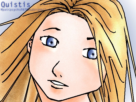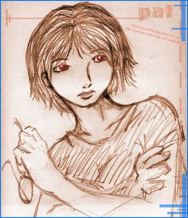 ------------- All artworks and fics are the property of Mendoza, Patricia Kyle (Mpat), unless stated. I gotzz no prob if you'll copy them but please acknowledge me and email me or sign my guestbook for notifications, OK. Enjoy ^_^!!! |